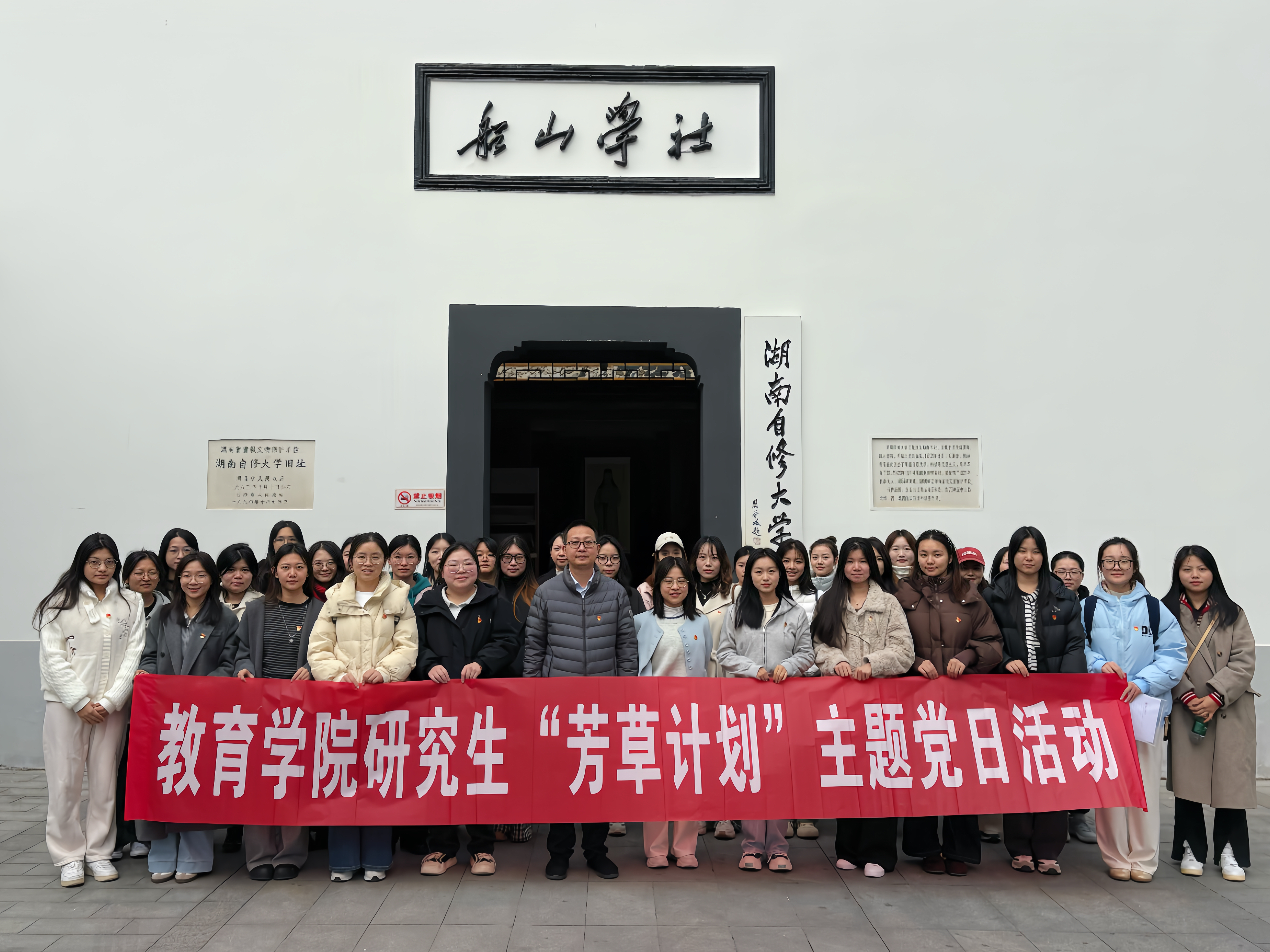 为深入学习贯彻习近平新时代中国特色社会主义思想,传承红色基因、赓续精神血脉,11月20日上午,beat365中文官方网站近40名研究生党员在学院党委副书记郑重谊、研究生辅导员万天赐的带领下,赴船山学社和中国共产党长沙历史馆开展“从船山星火到党史长歌——追寻思想之源与革命之路”的“芳草计划”主题党日活动。