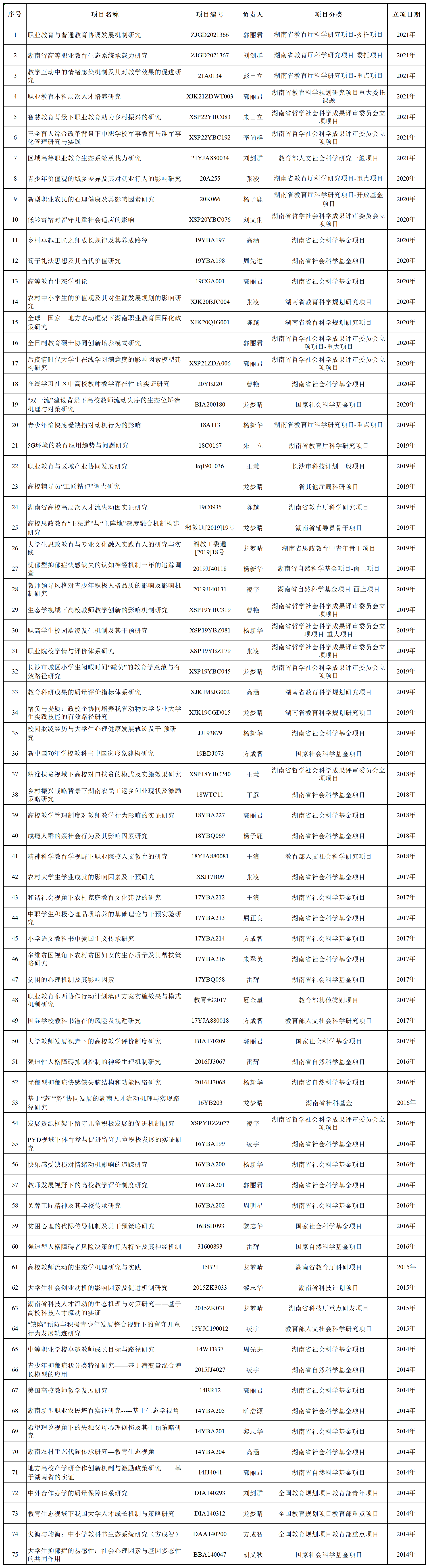 beat365中文官方网站近年主要纵向课题项目汇总(2021年—2014年)