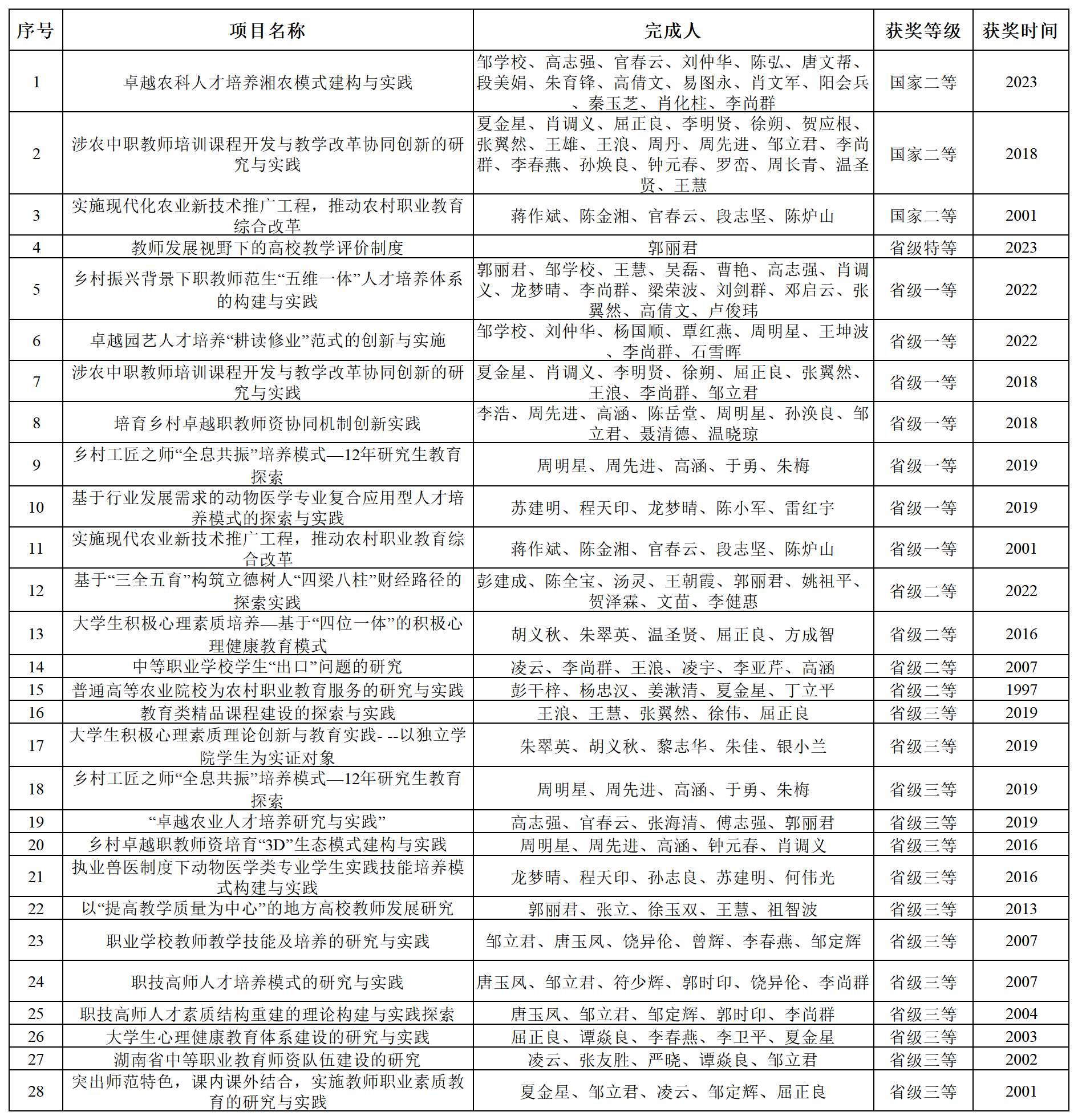 beat365中文官方网站教师国家级和省级教学成果奖一览表