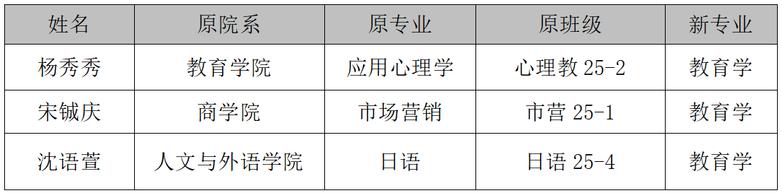 beat365中文官方网站2025年秋季学期转专业拟接收名单公示