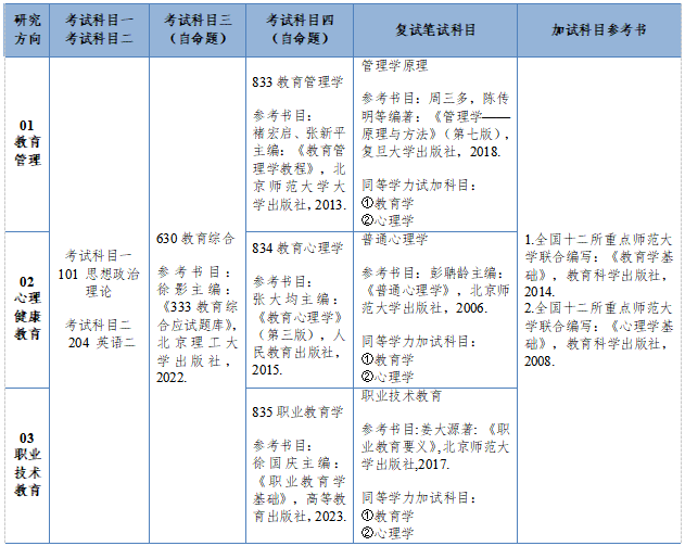自主命题考试科目:教育综合(150分);教育管理学(150分);教育心理学(150分);职业教育学(150分)